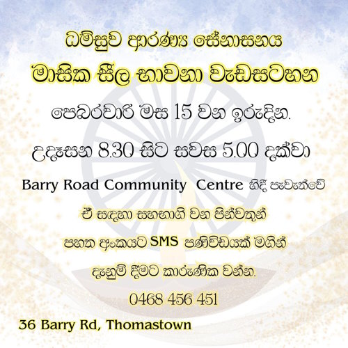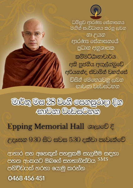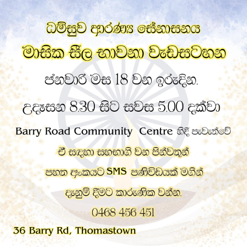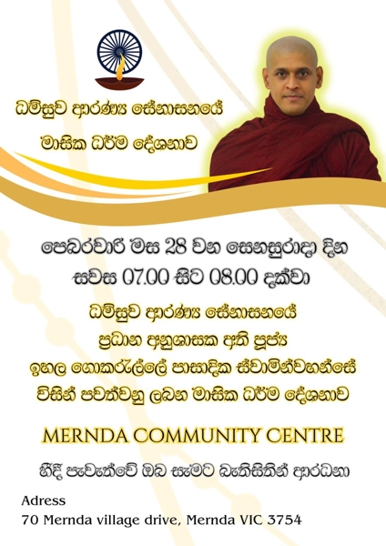by Ven. Ihala Gokaralle Pasadika Thero of Dhamsuwa Meditation Centre, Melbourne Australia.