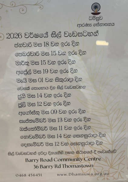 (All monthly Meditation and Sil Programs are conducted in hired venues outside the monks’ residence)